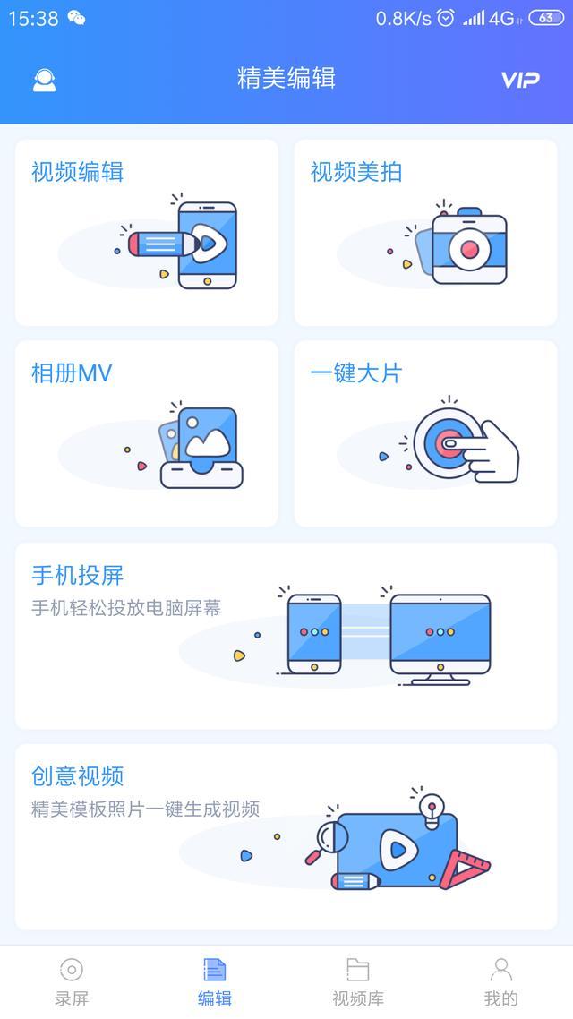除了录屏和投屏之外,它还有一些比较实用的操作,比如视频编辑、视频美拍、相册MV、一键大片、创意视频等等,功能可以说非常全面了。